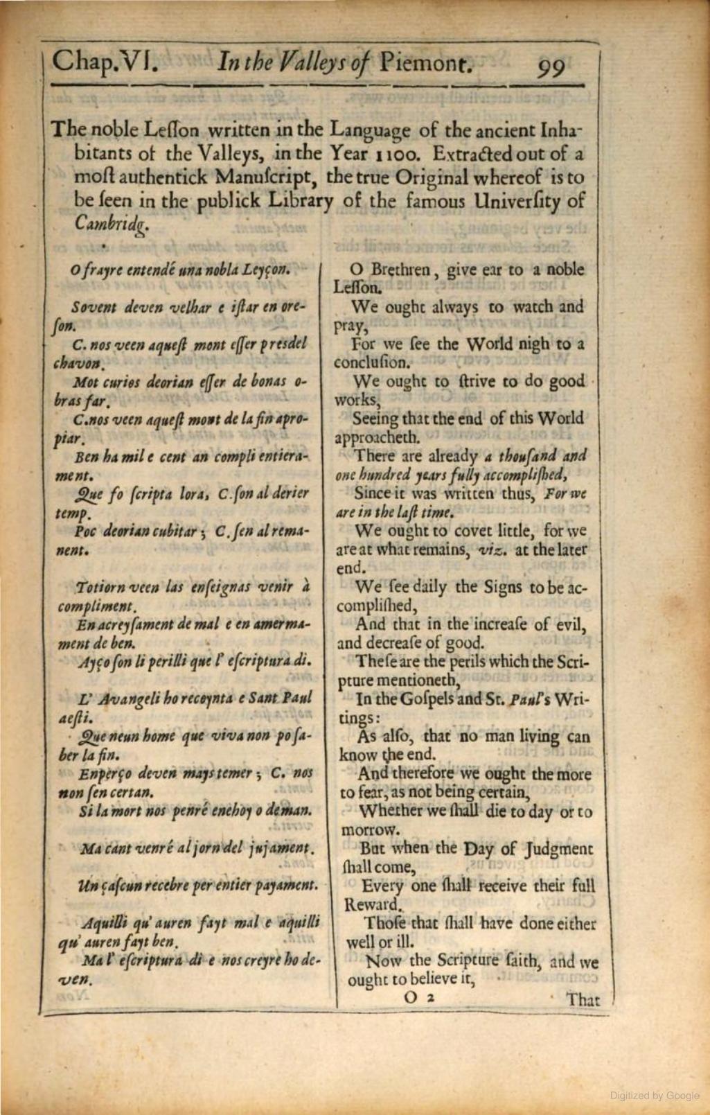 — Del New Park Street Pulpit, Vol. VII, Página 225"La historia hasta ahora ha sido escrita por nuestros enemigos, quienes nunca habrían conservado un solo hecho acerca de nosotros en el registro si hubieran podido evitarlo, y sin embargo se filtra de vez en cuando que cierta gente pobre llamada anabaptistas fue llevada para condenación. Desde los días de Enrique II hasta los de Isabel oímos de ciertos desdichados herejes que eran aborrecidos de todos los hombres por causa de la verdad que había en ellos. Leemos de hombres y mujeres pobres, con sus vestimentas cortadas, echados a los campos para perecer en el frío, y luego de otros que fueron quemados en Newington por el crimen del anabaptismo. Mucho antes de que vuestros protestantes fueran conocidos, estos horribles anabaptistas, como fueron injustamente llamados, estaban protestando por el "un Señor, una fe, y un bautismo." Tan pronto como la iglesia visible comenzó a apartarse del evangelio, estos hombres se levantaron para mantenerse firmes en el buen camino antiguo. Los sacerdotes y monjes deseaban paz y sueño, pero siempre había un bautista o un lolardo haciendo cosquillas a los oídos de los hombres con las Sagradas Escrituras, y llamando su atención a los errores de los tiempos. Eran una tribu pobre y perseguida. Se pensaba que la soga era demasiado buena para ellos. A veces la historia mal escrita nos haría pensar que se extinguieron, tan bien había hecho el lobo su trabajo en las ovejas. Sin embargo aquí estamos, bendecidos y multiplicados; y Newington ve otras escenas de sábado a sábado. Cuando pienso en vuestros números y esfuerzos, solo puedo decir con asombro: ¡qué crecimiento! Cuando pienso en las multitudes de nuestros hermanos en América, bien puedo decir: ¡Qué ha hecho Dios! Nuestra historia prohíbe el desaliento."